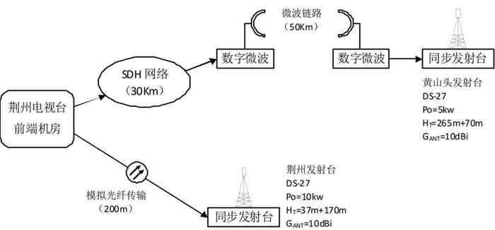 本同步覆盖网的节目信号传输,可以基于目前的模拟光纤传输、SDH网络、数字微波链路等平台,没有特别要求。当然,也可以通过卫星、MMDS等其它链路进行传输。