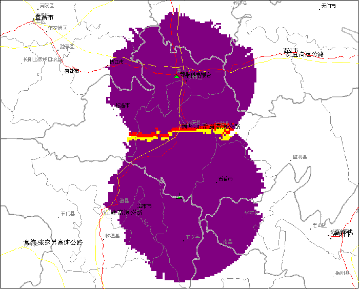 频率规划软件LS Chirplus依据ITU-R P.370 delta H模型进行覆盖分析,接收场强的门限取58dBμV/m,接收天线高度按4米计算,并计及接收天线的方向性。计算的结果显示,电视精密同步广播的覆盖预期非常理想。